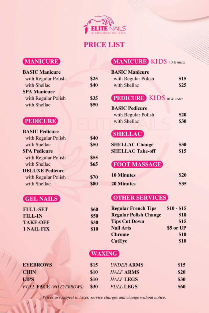 EXCELLENT Based on 6 reviews michelle kenney2025-09-21Trustindex verifies that the original source of the review is Google. Great pedicure today. Excellent foot massage as well. Will be back. Amber McTaggart2025-09-20Trustindex verifies that the original source of the review is Google. Great experience! Amazing service, very relaxing environment Shannon Macdonald2025-09-20Trustindex verifies that the original source of the review is Google. Lovely experience. Highly recommend! Nancy Coutu2025-09-19Trustindex verifies that the original source of the review is Google. Very good pedicure today from Very friendly staff. Highly recommend 👌 Jennifer2025-09-18Trustindex verifies that the original source of the review is Google. I had a pedicure today. The pedicure was perfect and probably one of the best foot massages I've ever had. Would recommend. Leisa Carrick2025-09-08Trustindex verifies that the original source of the review is Google. I really enjoyed my experience at Elite nails. The staff are so friendly and helpful. It was very relaxing and got a beautiful pedicure. My feet feel fantastic. I will definitely be going back.